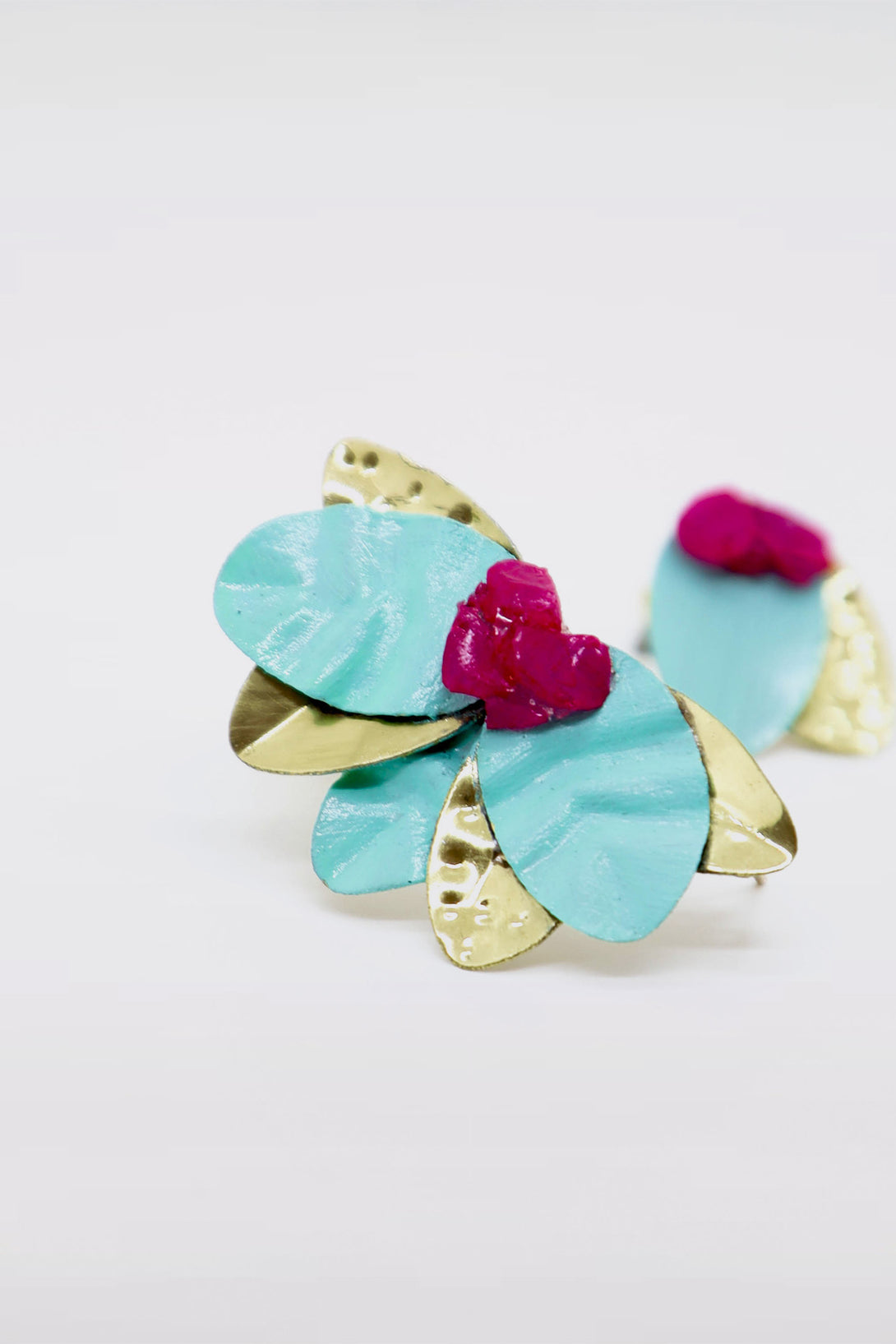 Set de trepadora y aro con textura de hojas hecha a mano. Nuestra pieza estrella, en nuevas versiones y siempre lista para ser protagonista.